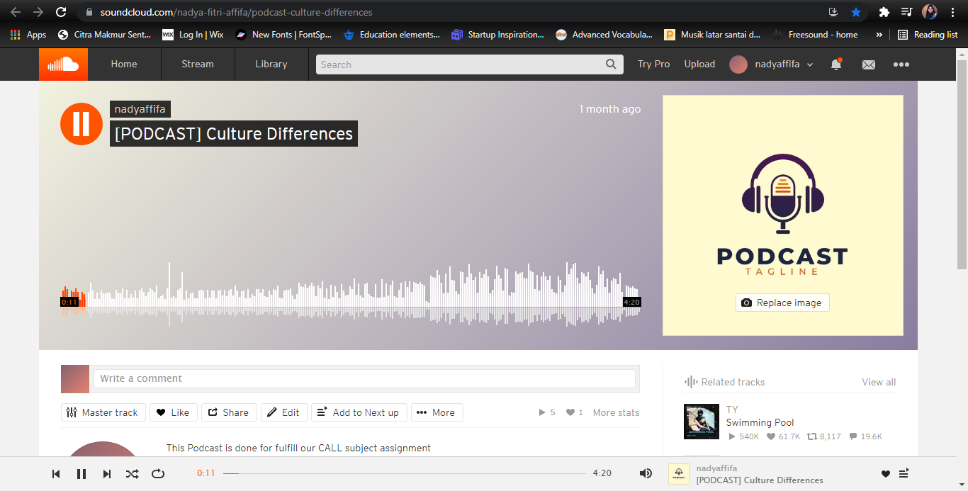 of video. Furthermore, the topic that I and my group discussed also different. We uploaded our podcast on soundcloud.
